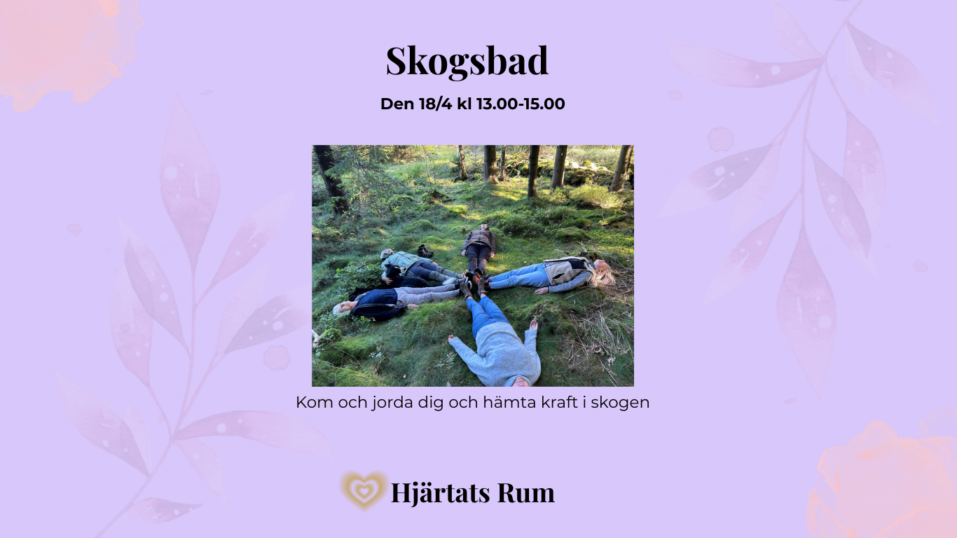 Välkommen in och jorda dig i skogen i ett härligt skogsbad . Landa i naturens stillhet och låt skogen öppna dina sinnen. Vi möts i stillhet och tystnad för att hitta lugn, återhämtning och kontakt med både naturen och oss själva. Vi kommer även att göra en gemensam, guidad meditation. Beroende på väder och vind så gör vi den utomhus eller inomhus och vi bjuder på fika. Alla som önskar får ett budskap med sig på vägen. 📅Datum: Söndagen den 18/4 ⏰Tid: 13.00-15.00 📍Plats: Örkelljungavägen 1440, Munka-Ljungby 💰Investering: 450:- Anmäl dig här 💌mail: hjartatsrum@outlook.com ☎️telefon: Dragana 073-581 64 53, Lena 0708-733 550 .